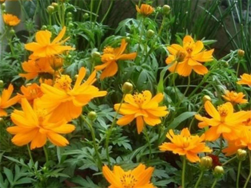 生活習性:硫華菊喜陽光充足,不耐寒。多分枝,葉為對生的二回羽狀復葉,深裂,裂片呈披針形,有短尖,葉緣粗糙,與大波斯菊相比葉片更寬。春播花期6-8月,夏播花期9-10月。